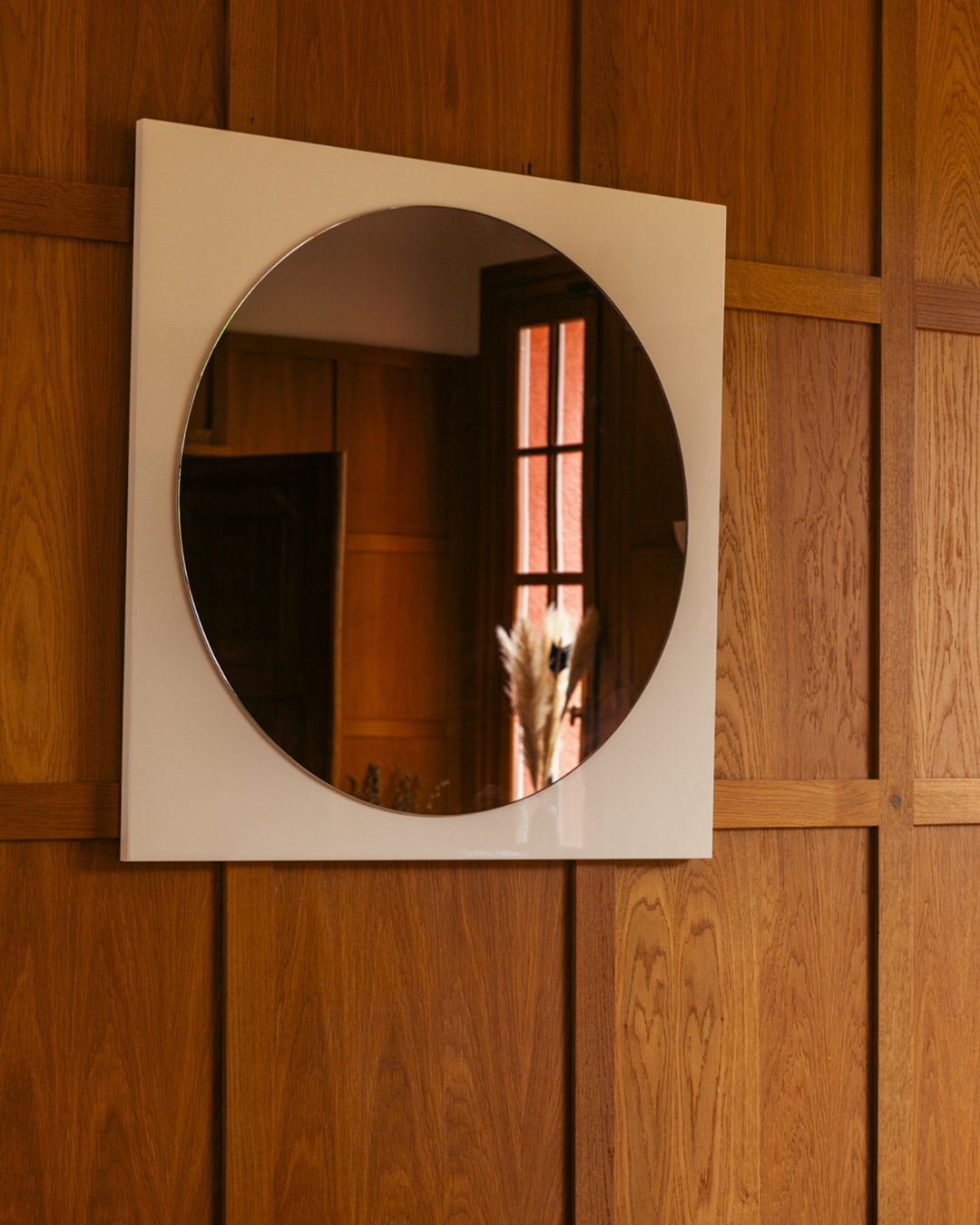 Son cadre en bois laqué, finition brillante, se distingue par sa teinte blanc crème douce et lumineuse. Cette couleur intemporelle apporte une sensation de clarté et de légèreté, tout en s’intégrant facilement à différents styles d’intérieurs : moderne, minimaliste, chic ou classique revisité. La laque brillante accentue les lignes du miroir et reflète subtilement la lumière ambiante.