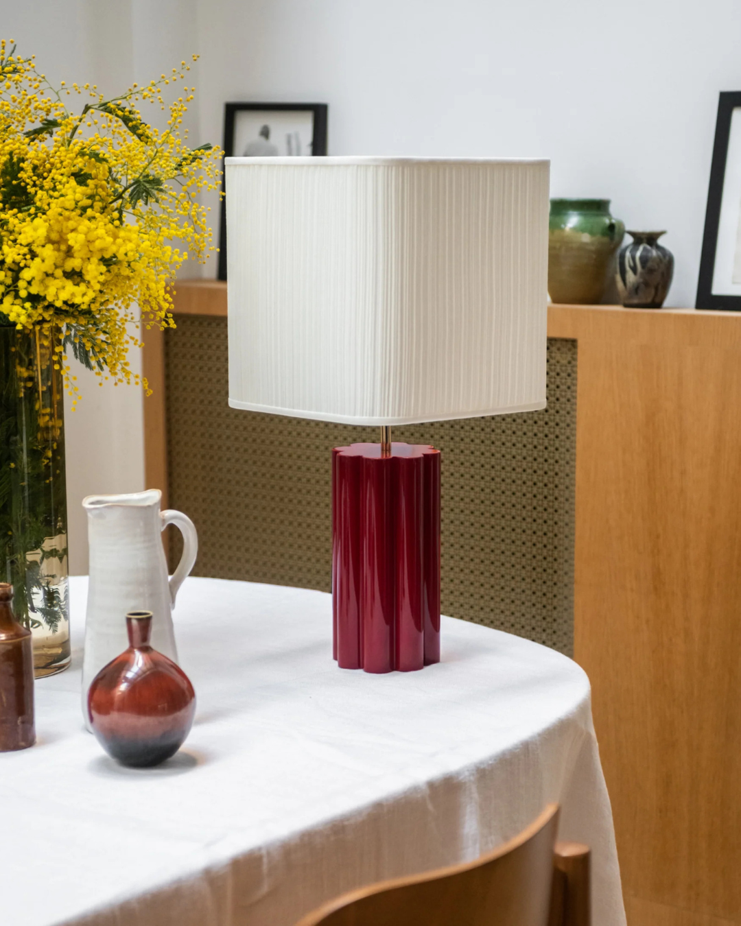 La lampe GioGia bordeaux – The Socialite Family est un luminaire au design affirmé, pensé pour sublimer les intérieurs avec élégance et profondeur. Sa teinte bordeaux, intense et chaleureuse, apporte une touche de caractère tout en conservant une esthétique raffinée et intemporelle.