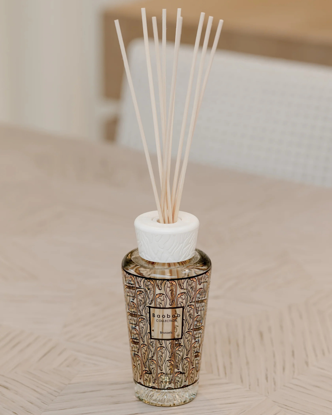 Le diffuseur de parfum Brussels Baobab 250 ml invite à créer une atmosphère chaleureuse et élégante inspirée des intérieurs de famille et de l’architecture art nouveau. Véritable objet décoratif, il diffuse en continu une fragrance boisée et réconfortante qui habille subtilement votre intérieur.