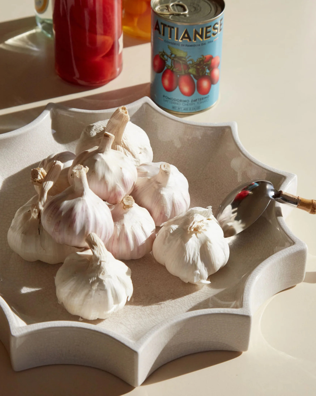 Sa teinte blanc crème, douce et lumineuse, est sublimée par une finition émail brillant craquelé. Cette particularité provient du processus de cuisson : chaque émail réagit différemment à la chaleur, révélant des craquelures, nuances et motifs uniques. Aucun vide-poche Tasca ne se ressemble, faisant de chaque pièce un objet authentique et artisanal.