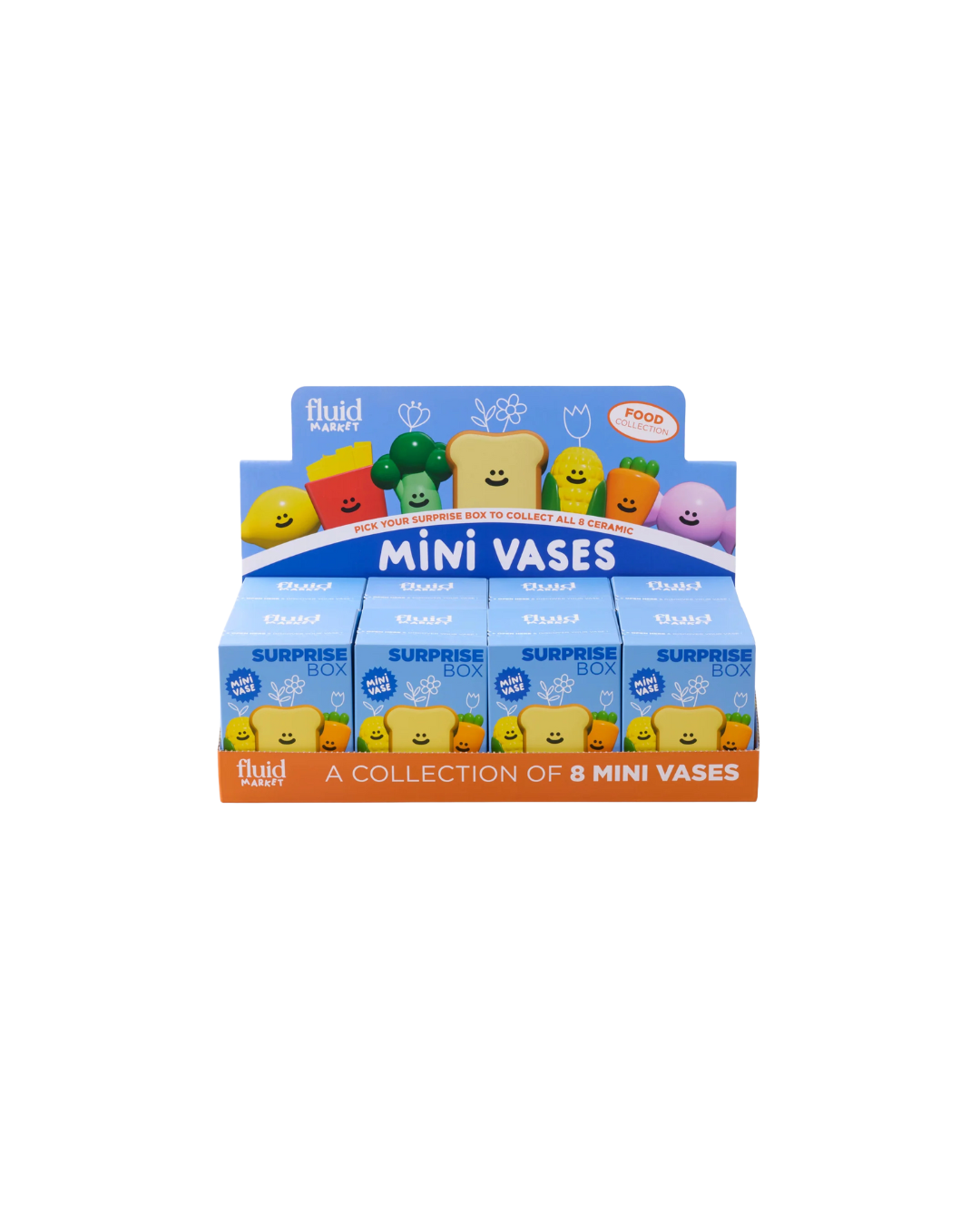 Le principe est simple : ouvrez votre boîte et laissez-vous surprendre par l’un des mini vases exclusifs de la collection. Vous rencontrerez peut-être Charlotte la Carotte, Lilly le Brocoli ou encore Josh la Brioche… mais attention, un modèle secret se cache dans la série ! Personne ne sait à quoi il ressemble (à part l’équipe Fluid Market 😜).