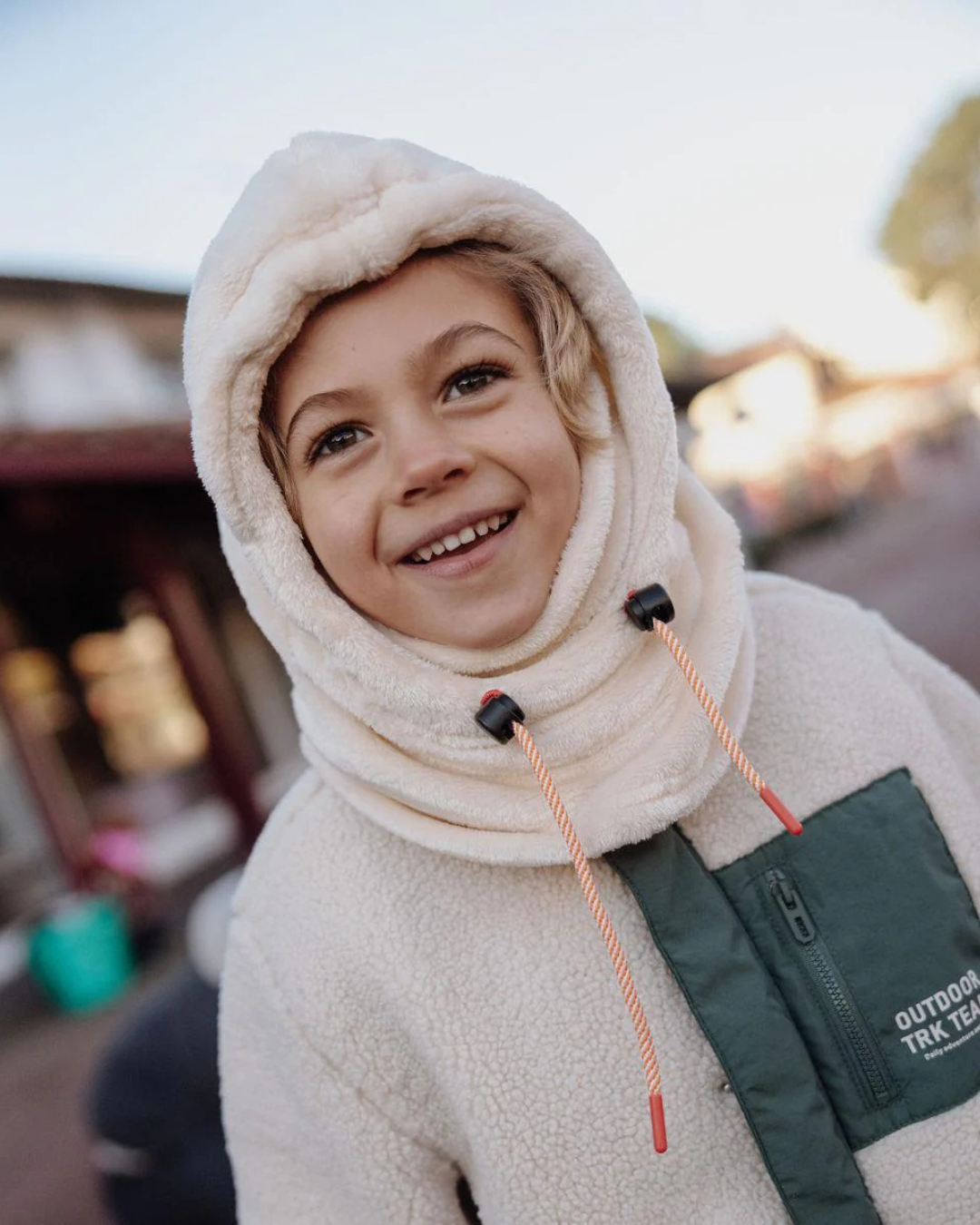 La cagoule Warmy Cream est un essentiel hiver pour bébés et enfants : chaude, douce, ajustable et certifiée Oeko-Tex.
