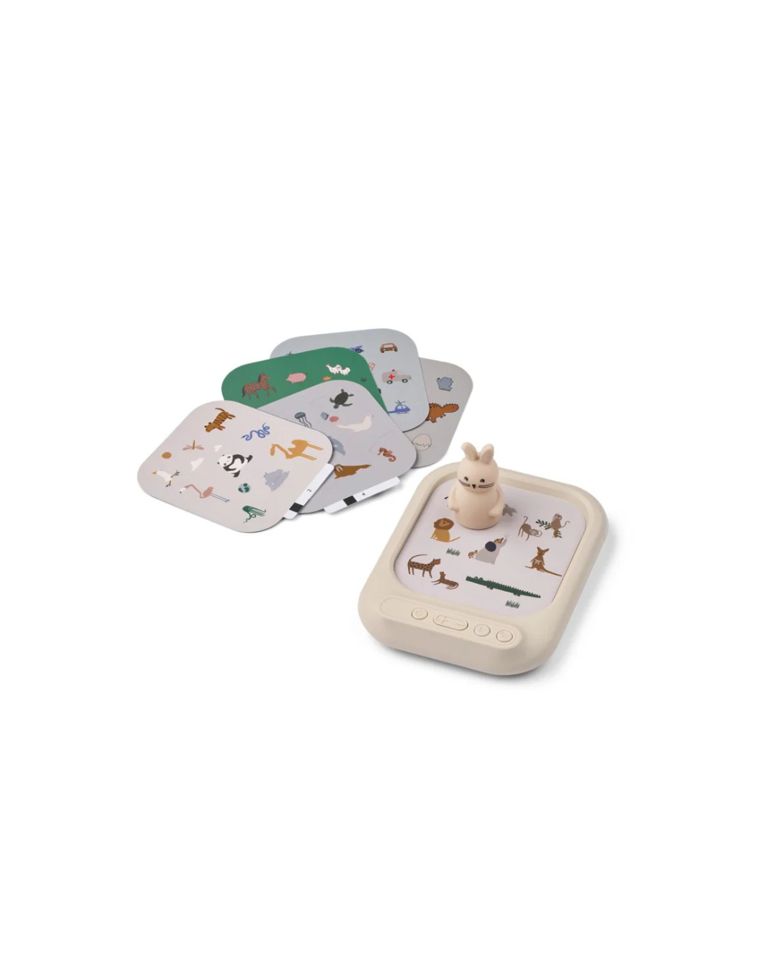 Pour activer les sons, il suffit d’insérer une carte et de placer la figurine de lapin en silicone sur les éléments illustrés. Cris d’animaux, bruits de la nature ou décollages de fusées : chaque interaction déclenche un son réaliste qui stimule l’éveil sensoriel et l’apprentissage. Ce tableau sonore éducatif encourage le développement du langage, la reconnaissance des sons et la motricité fine.