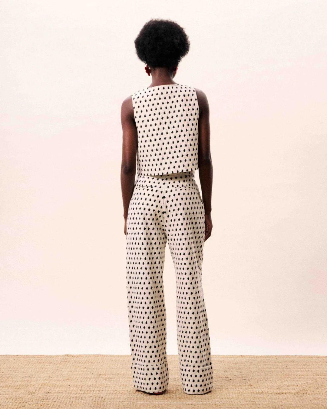 Le gilet Nautilus crème séduit par son motif géométrique noir élégant et sa coupe droite intemporelle. Conçu en coton et lin, il allie confort naturel et style chic pour un look moderne et raffiné.