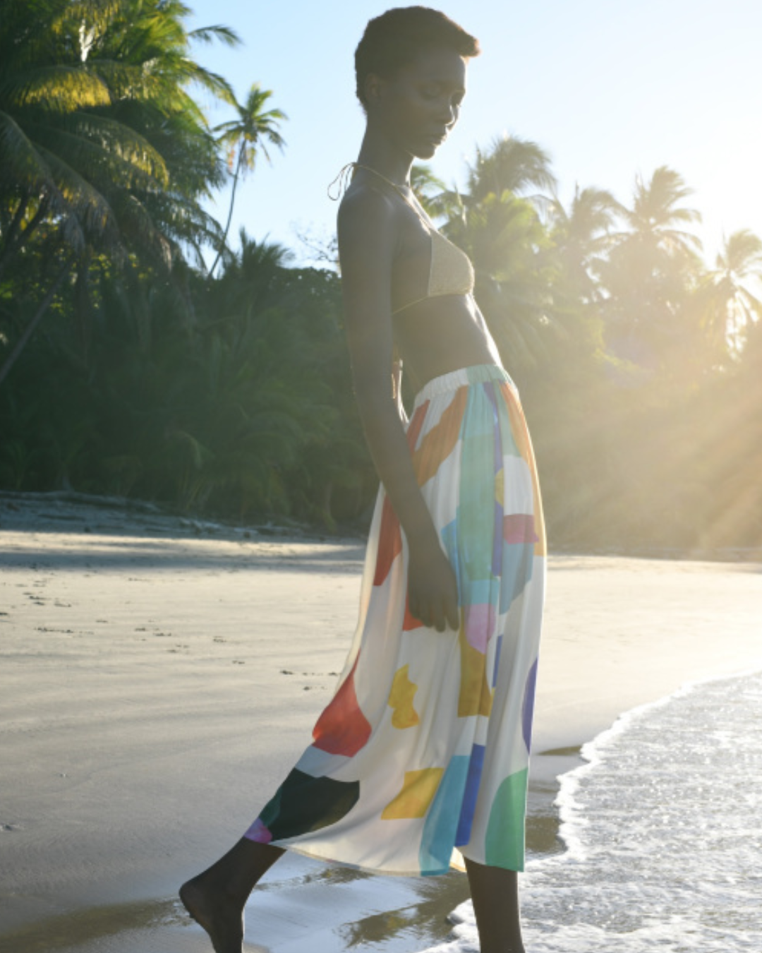 Polyvalente, la jupe CREAMY SPEECH se prête à différents styles. Associée à la blouse en viscose du même motif, elle se transforme en une silhouette complète, évoquant l’allure d’une robe fluide et harmonieuse. Pour un look plus casual, elle se porte facilement avec un t-shirt uni ou une maille légère.