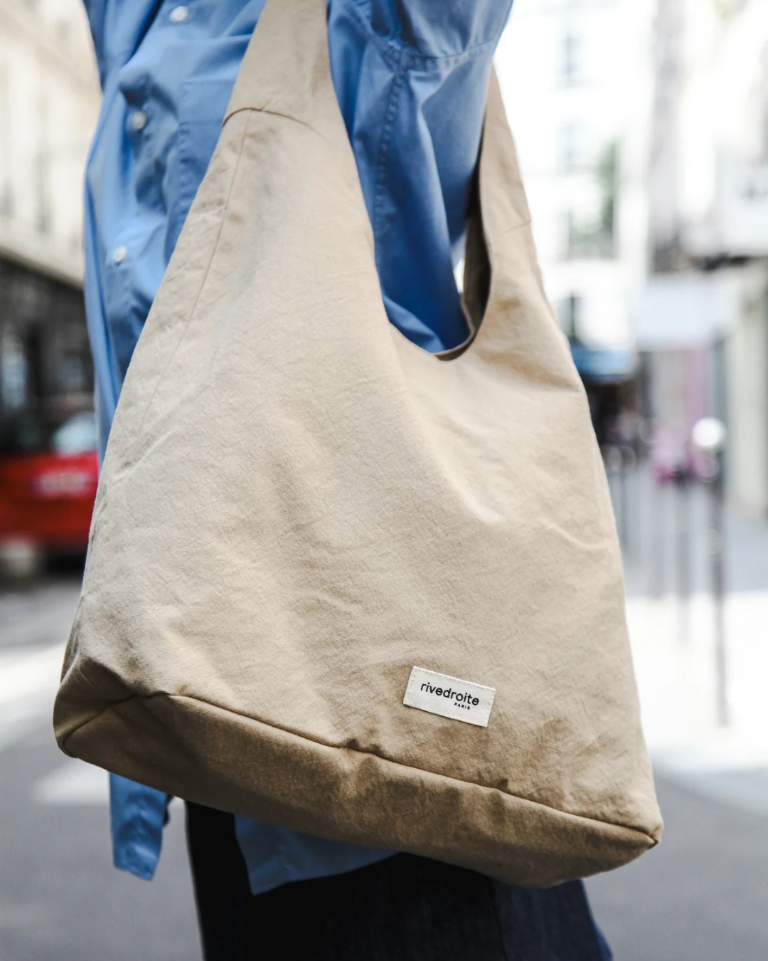 Le sac Richelieu beige sand est un sac hobo porté épaule qui allie style minimaliste et fonctionnalité. Conçu en coton recyclé épais, il offre une excellente tenue tout en restant léger et durable.