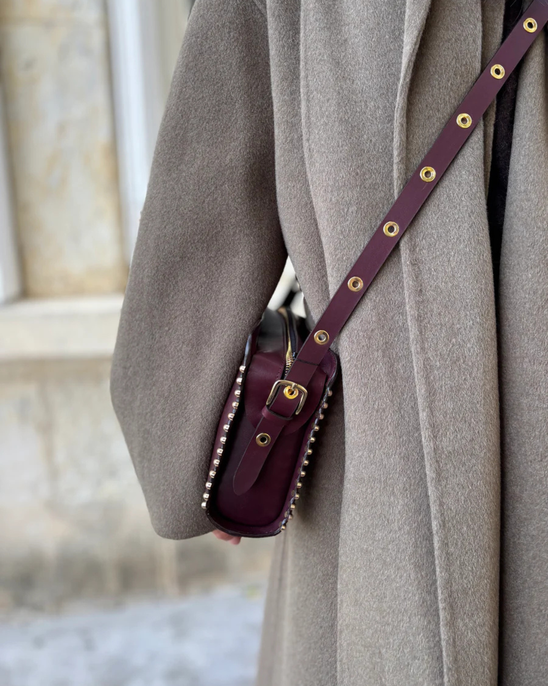 Son coloris Bordeaux profond en fait un véritable accessoire mode : audacieux, féminin et facile à assortir. Il apporte une touche de contraste élégant aux tenues claires et relève avec finesse les looks plus sombres.