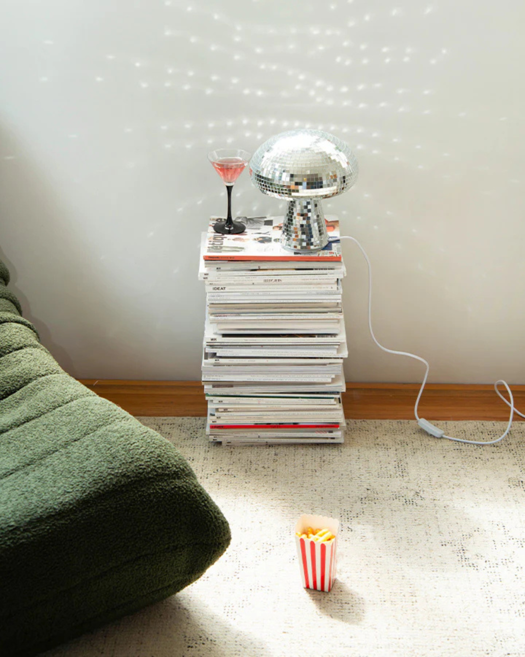 Transformez votre intérieur en une véritable discothèque miniature et laissez la magie opérer : avec la lampe champignon disco miroir, la fête commence dès que vous la branchez !